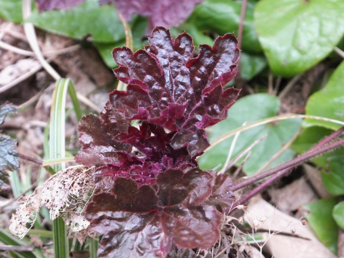 Another Heuchera (no longer have the name), the marbling effect resembles a much more tender begonia leaf, but this has the advantage of being evergreen and hardy.