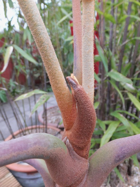 DeleteOh, this was such an enjoyable post. I loved looking at all this lovely new growth. I never realized the new leaves on Aesculus were so interesting. Hmm....a Schefflera substitute, huh?