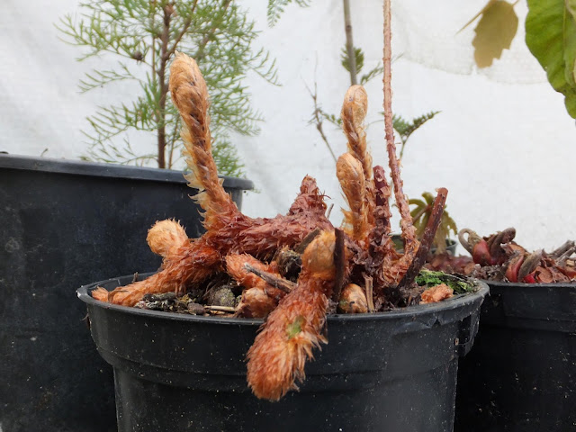| Old fronds of ground ferns have all been removed, ready for their fresh and new ones to make this area lush again. |