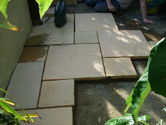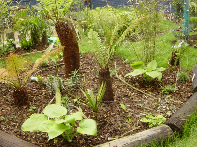 We spent quite a bit of time tying to decide on the layout for the jungle area. And as is often the case I drew out a number of sketches of different designs. I can often visualise what I think will look good, but I am not that great at explaining my ideas to Mark, so a sketch helps. Sadly none of those sketches survive. The approximate design was to have a roughly kidney shaped bed in the middle of the former lawn area with pathways surrounding this and beds of varying depths round the edges.