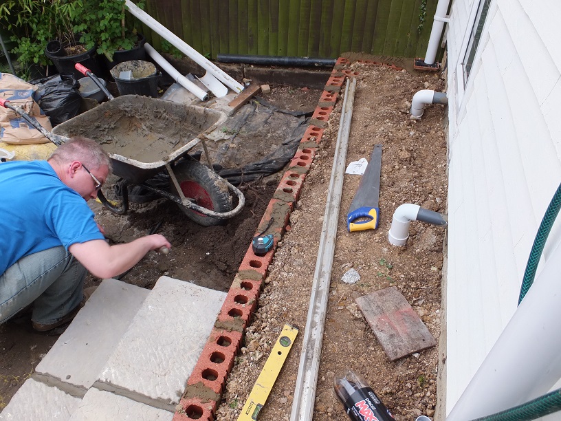 Now the first and smaller greenhouse has been moved I was able to complete the wall next to the filter house and add steps down into the working area.