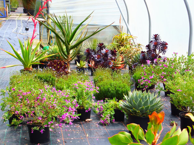 The nursery specialise of plants coming from the southern hemisphere and stock a wide array of succulents like aeoniums, agaves, aloes; as well as various restios, proteas, ericas, and summer flowering bulbs.