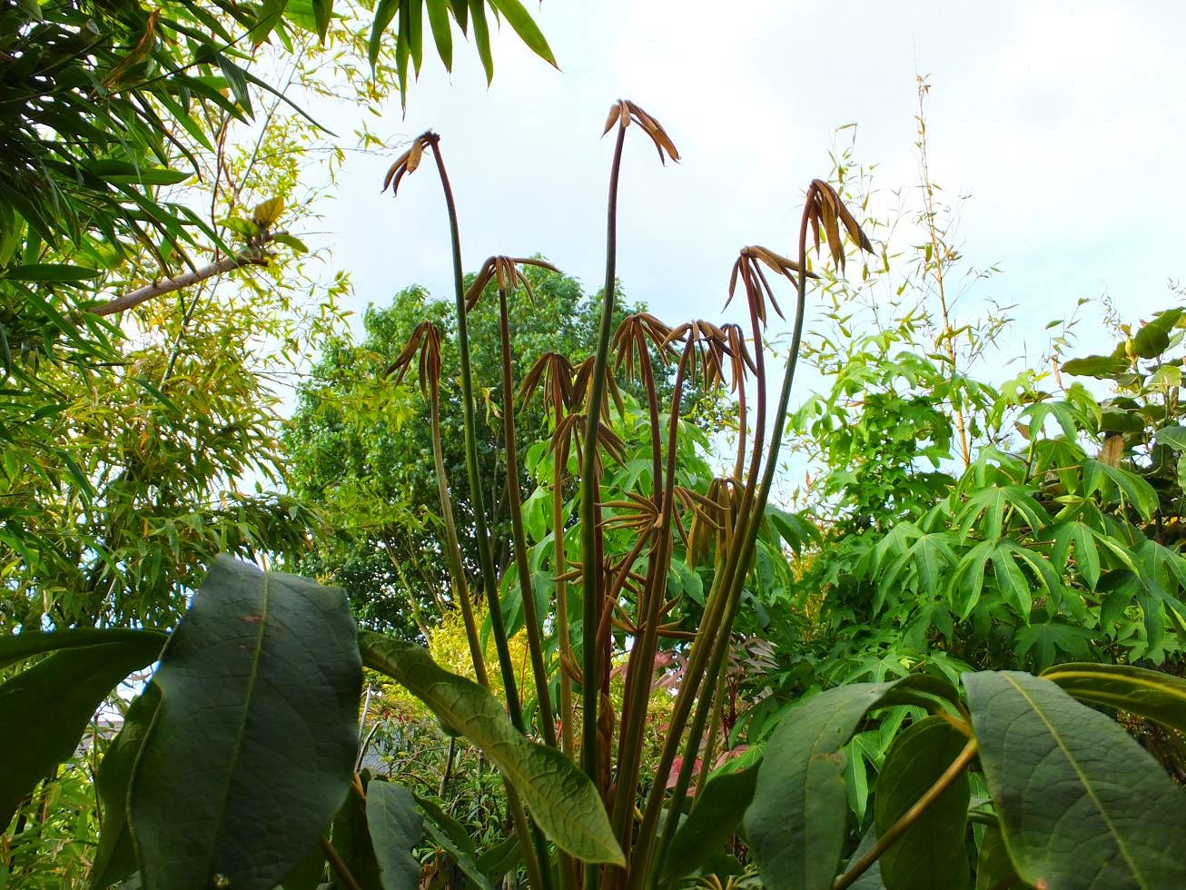 All the Scheffleras in our garden are busy flushing and putting out new growth at the moment. Like with many plants this year the burst of new growth has been delayed, much later than usual and the Scheffleras were no exception. But their current, almost simultaneous flushing are quite a sight to behold whenever we catch glimpse of them as we walk around the garden. A delight to see and never fails to bring a smile especially to Schefflera lovers like us. You can see just how many of these have grown by looking back at this post about our Scheffleras from a couple of years ago.