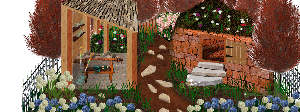 Taking inspiration from the witches in William Shakespeare’s play Macbeth, this garden is an imaginative depiction of the witches’ home. The design includes a dilapidated house that is overgrown with the plants used in the witches’ concoctions. The garden seems to be abandoned; it has been left to decay and grow out of control. The planting scheme features medicinal and poisonous plants that are important to the witches. A cauldron has been knocked over and the contents are spilling out, bubbling spontaneously to give the impression that there is evil magic within this garden.