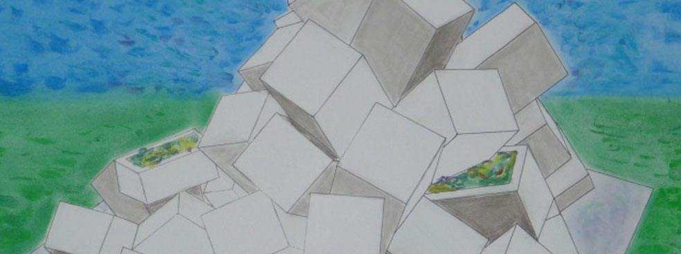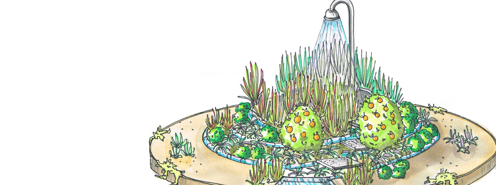 Looming into view, floating on a shimmering glass sea, is the Tip of the Iceberg. The sun reflects multi-faceted, crystalline elements within the garden, which on closer inspection are clearly recognisable as fridges. Given a new lease of life as building blocks and planters, each fridge represents an alpine habitat, filled with blue and white flowers basking in their cool surroundings. Inspiration came from Japanese gravel gardens and often seeing fridges dumped at the tip. Although the garden could be seen as just another ‘fridge mountain’, the design highlights the reality of our resource-constrained world and shows that something striking and beautiful can be created from the debris of modern life.