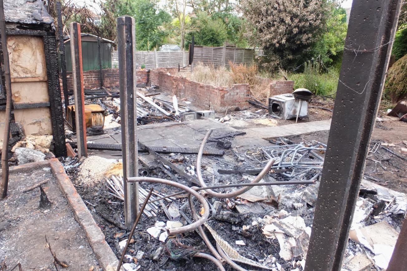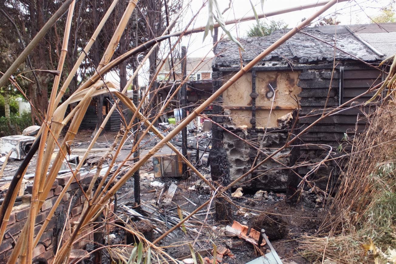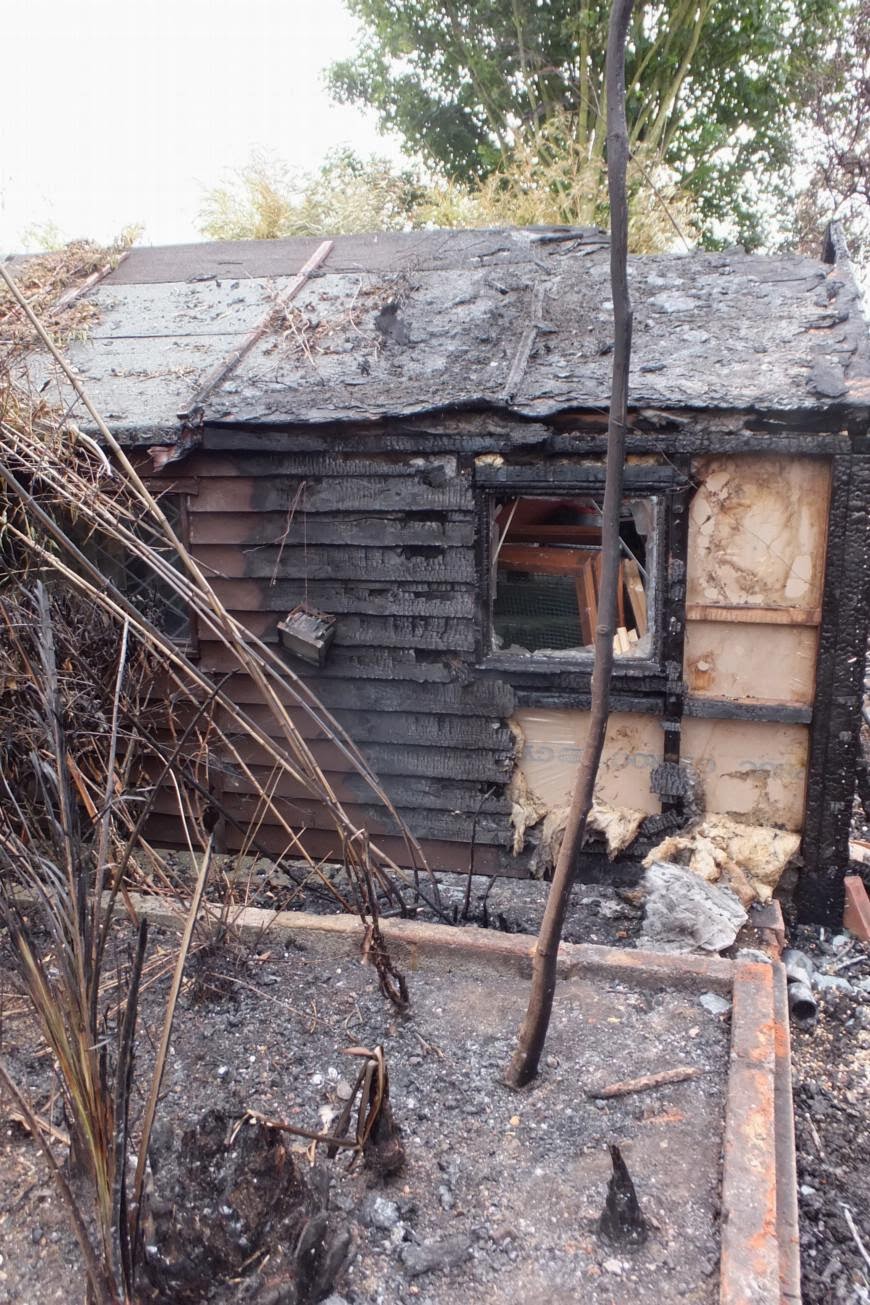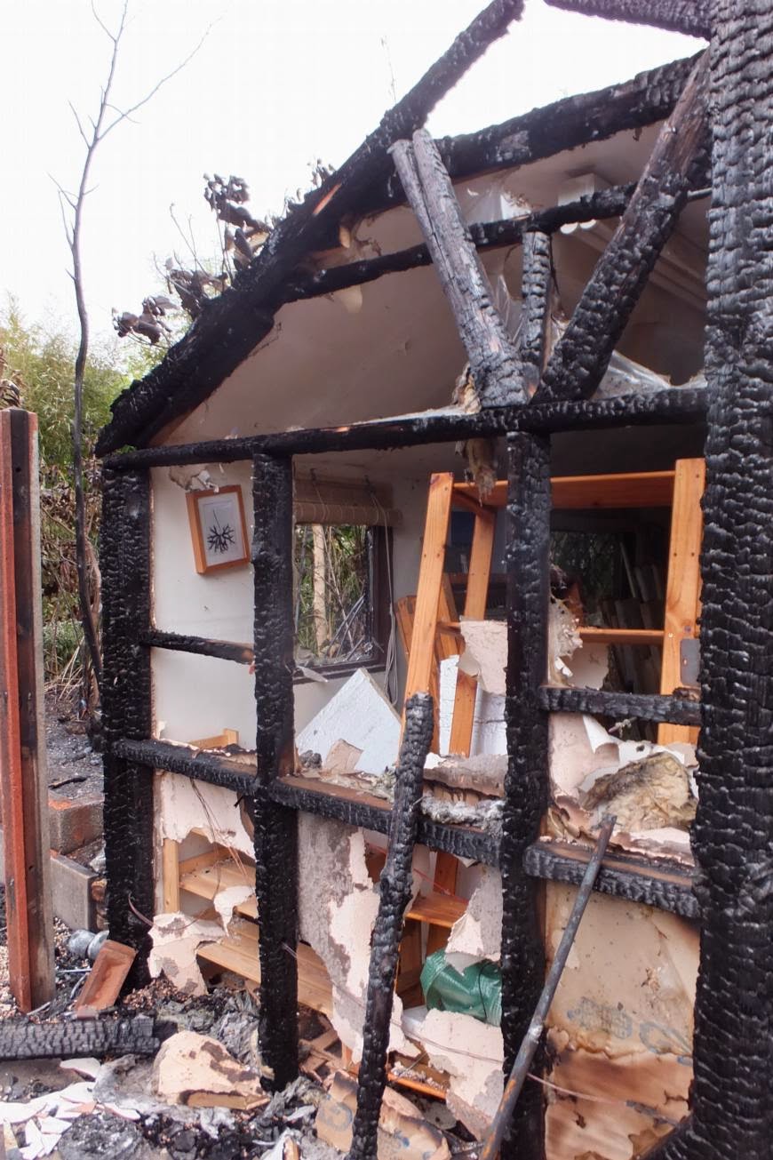 | The garden outbuilding, it was well built and insulated and despite the outside being severely burnt... |