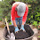 | Of what's left of our signature blue bench and the ruins of a vase |