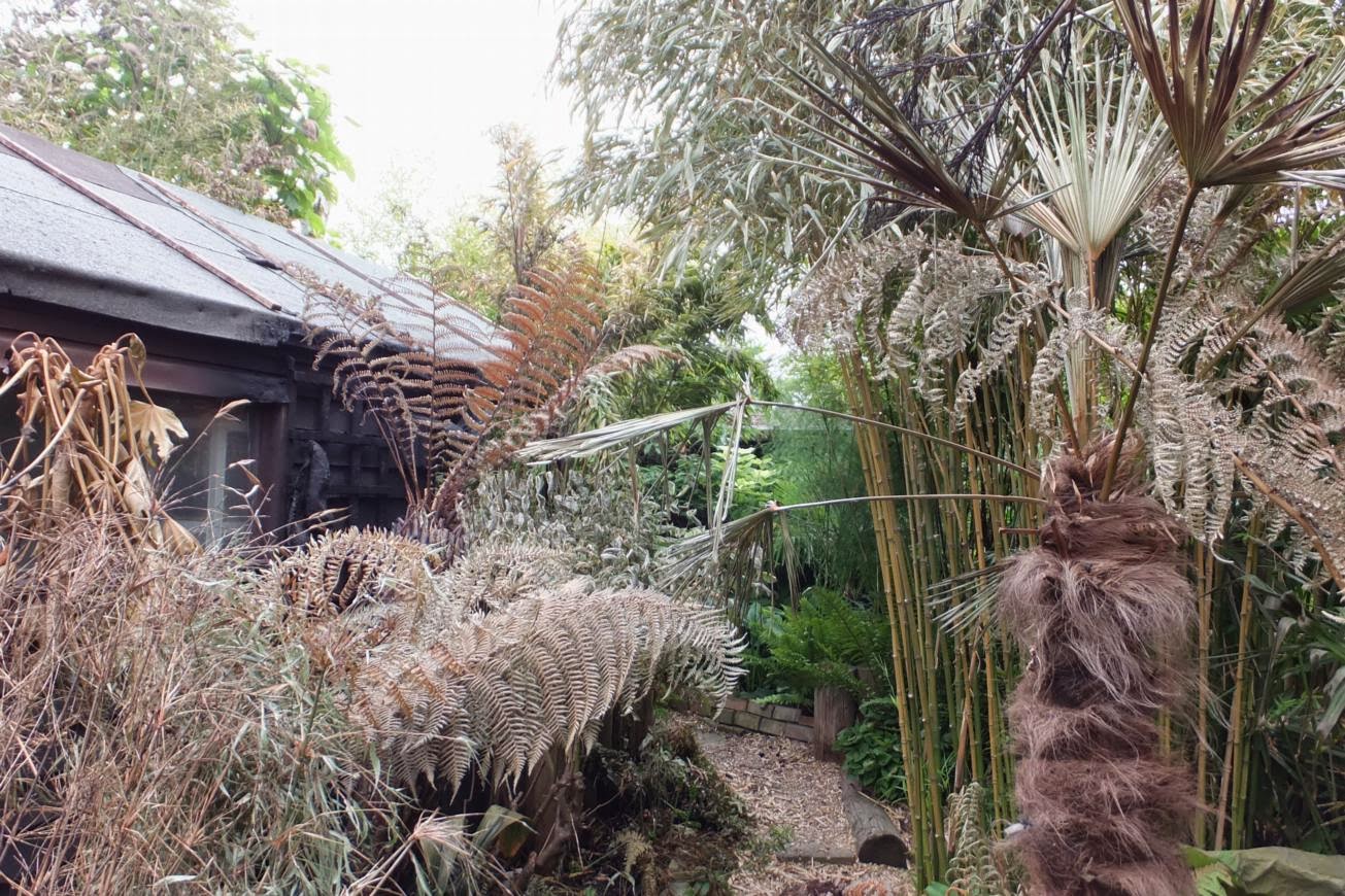 | Of what were a Dicksonia antarctica to the left and a Trachycarpus wagnerianus to the right |