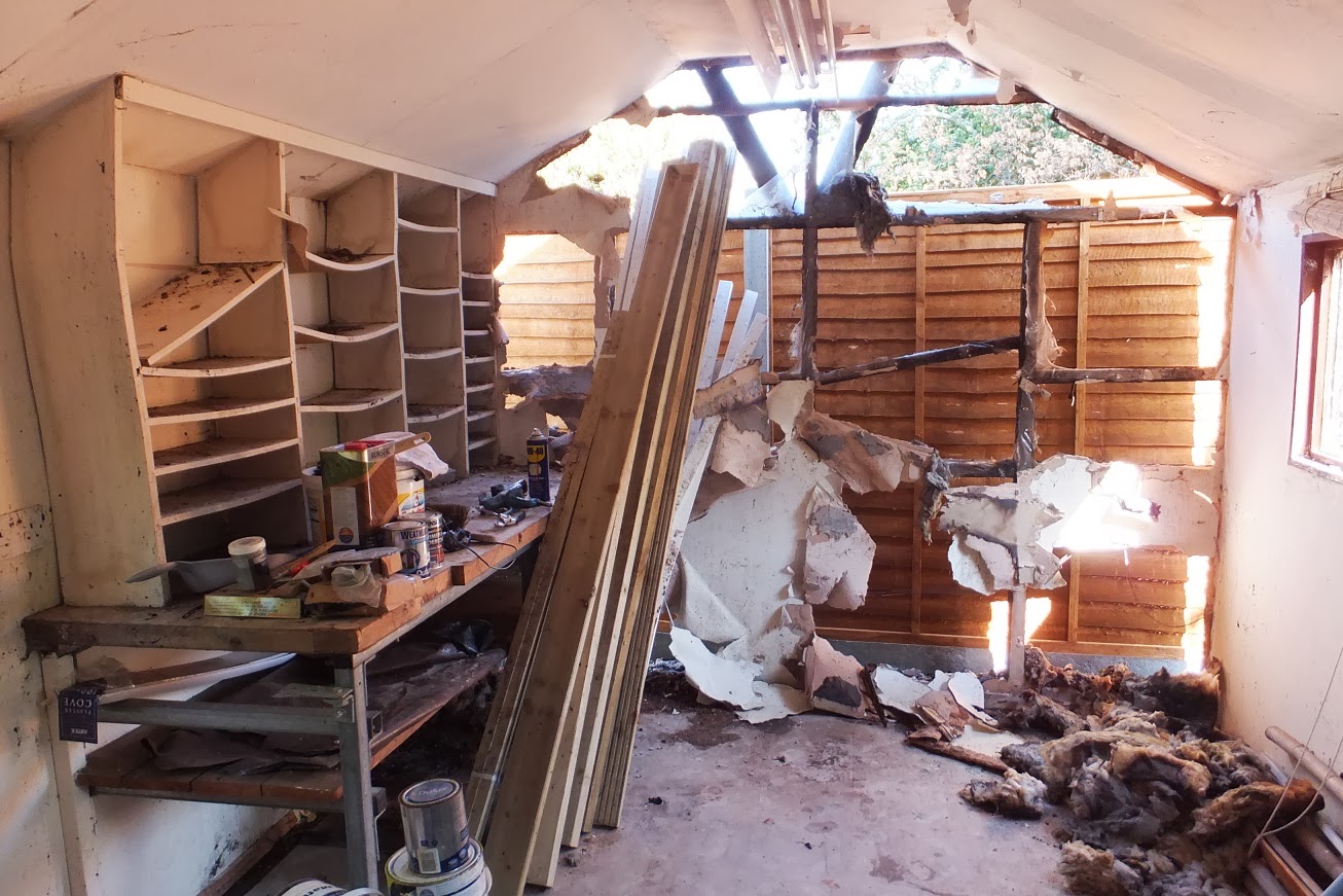 And the inside of the Jungle Hut has been tidied up already and almost ready for demolition. We have salvaged what we can salvage, cleaned what we can clean, and most important of all cleared out and binned as much as needed to be binned.