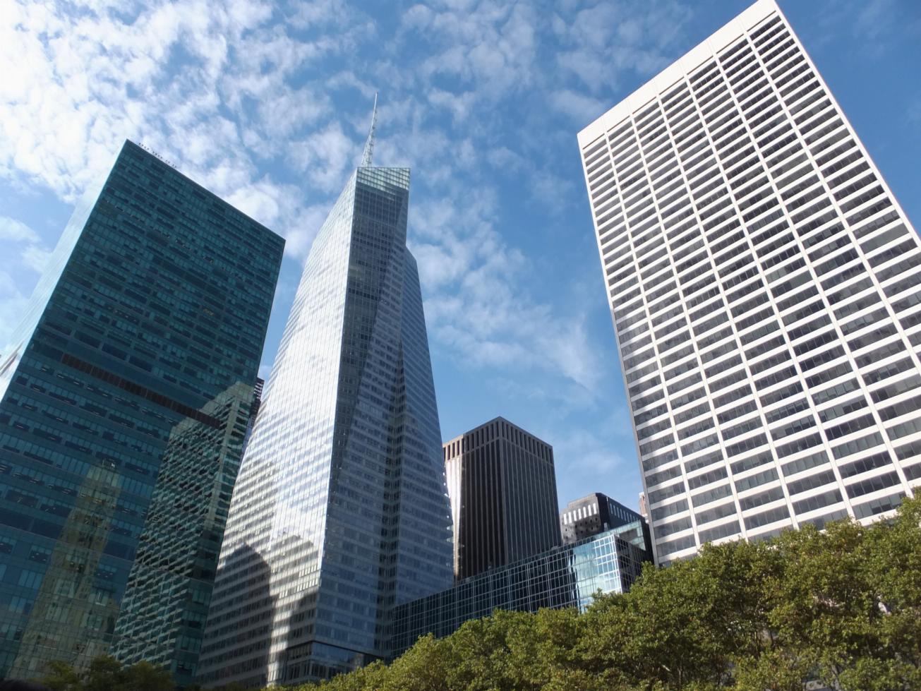 nestled in amongst the towering skyscrapers of midtown Manhattan.