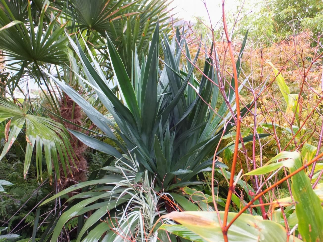 DeleteHi Mark, it is amazing how lush with all this tropical foliage your garden still is at this time of the year. I had assumed that your plants had lost a lot more leaves or would be already dormant. Today I especially like the last three photos of the plants with blue foliage. They are sooo... cool!