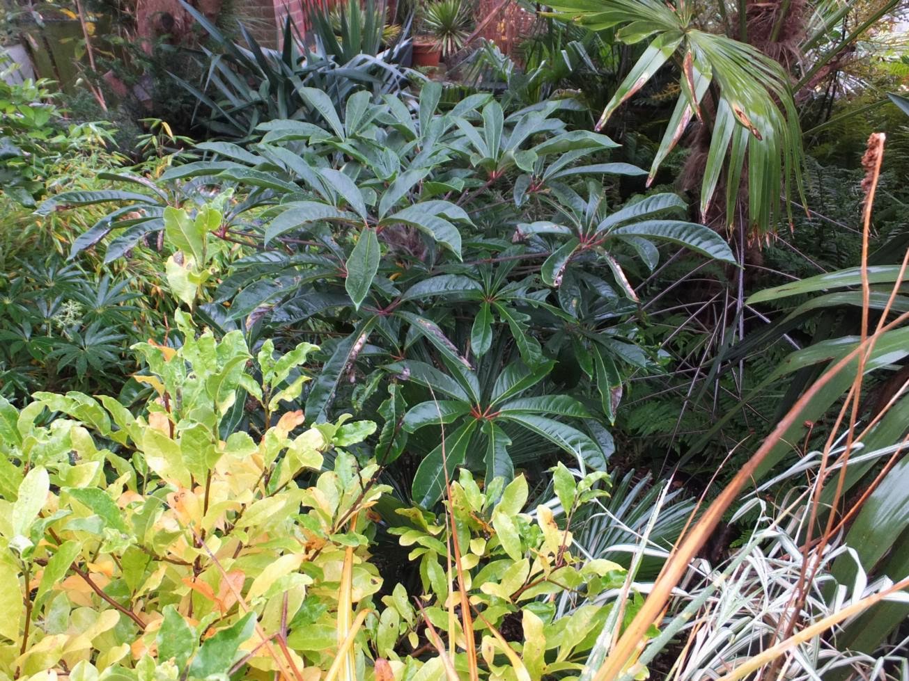 DeleteYour yuccas look magnificent! I love that euphorbia deflexa too, and you have done a great job of educating me, I can now apparently recognise a Schefflera without prompting! Definitely worth celebrating the foliage while it is still looking good, there will be a lot more space for your evergreens to shine for next months foliage follow up post.