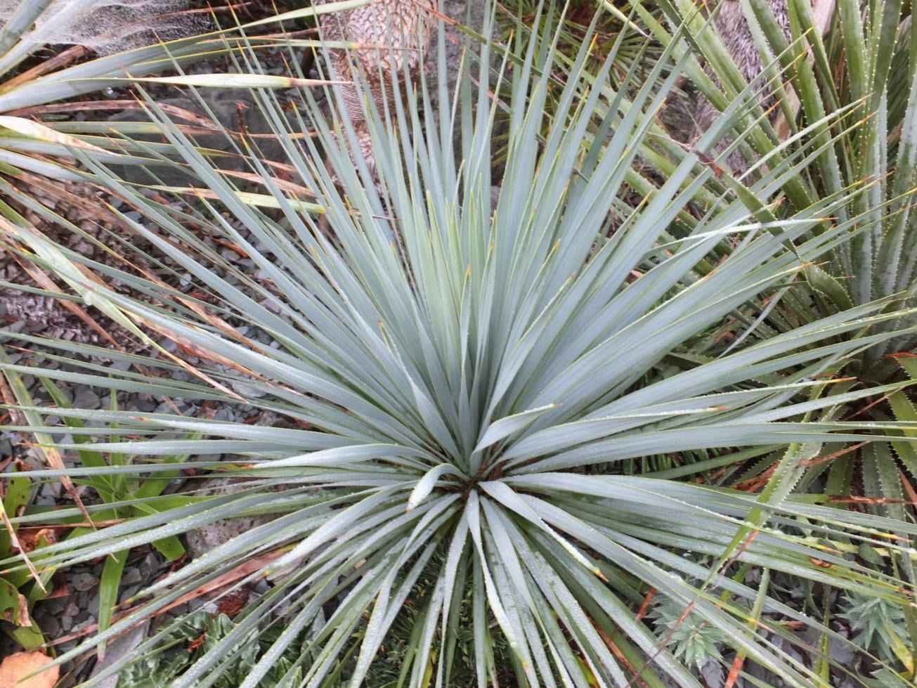 | Looking particularly very blue even on a cloudy and wet day - Yucca rostrata |