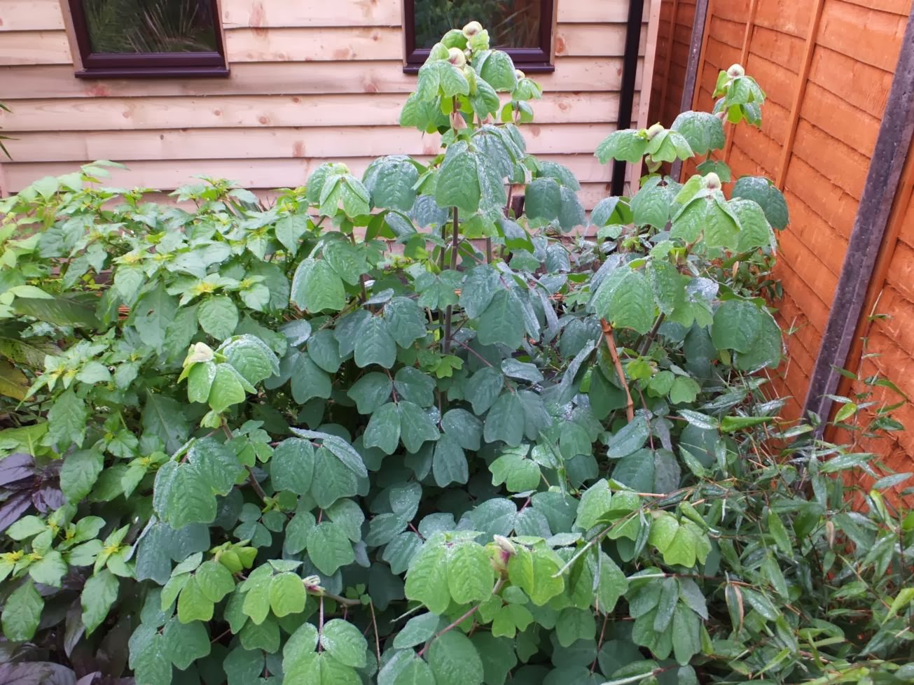 ReplyDeleteSo much still looks lush there. What is the name of the plant to the left of the Amicia in the fifth photo, the one with the yellowish new growth?