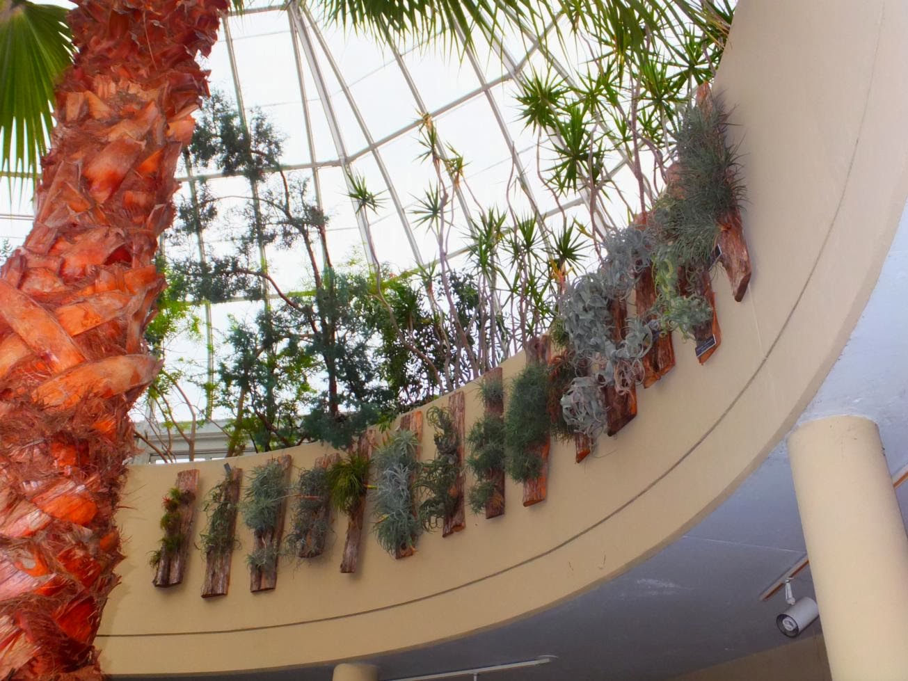 | You'll see a Washingtonia palm and a display of Tillandsias as you go out from the tunnel |