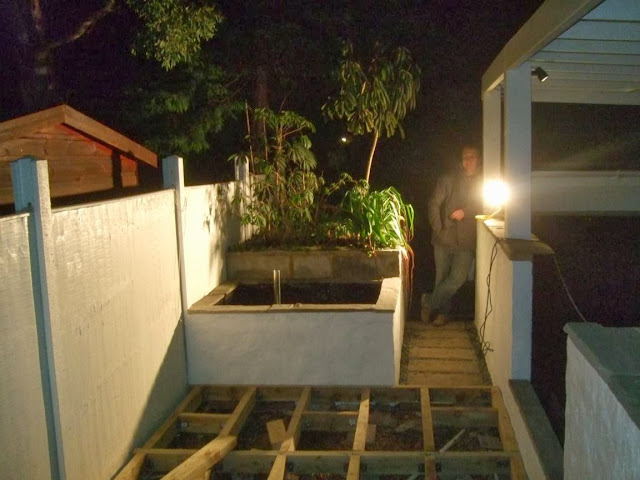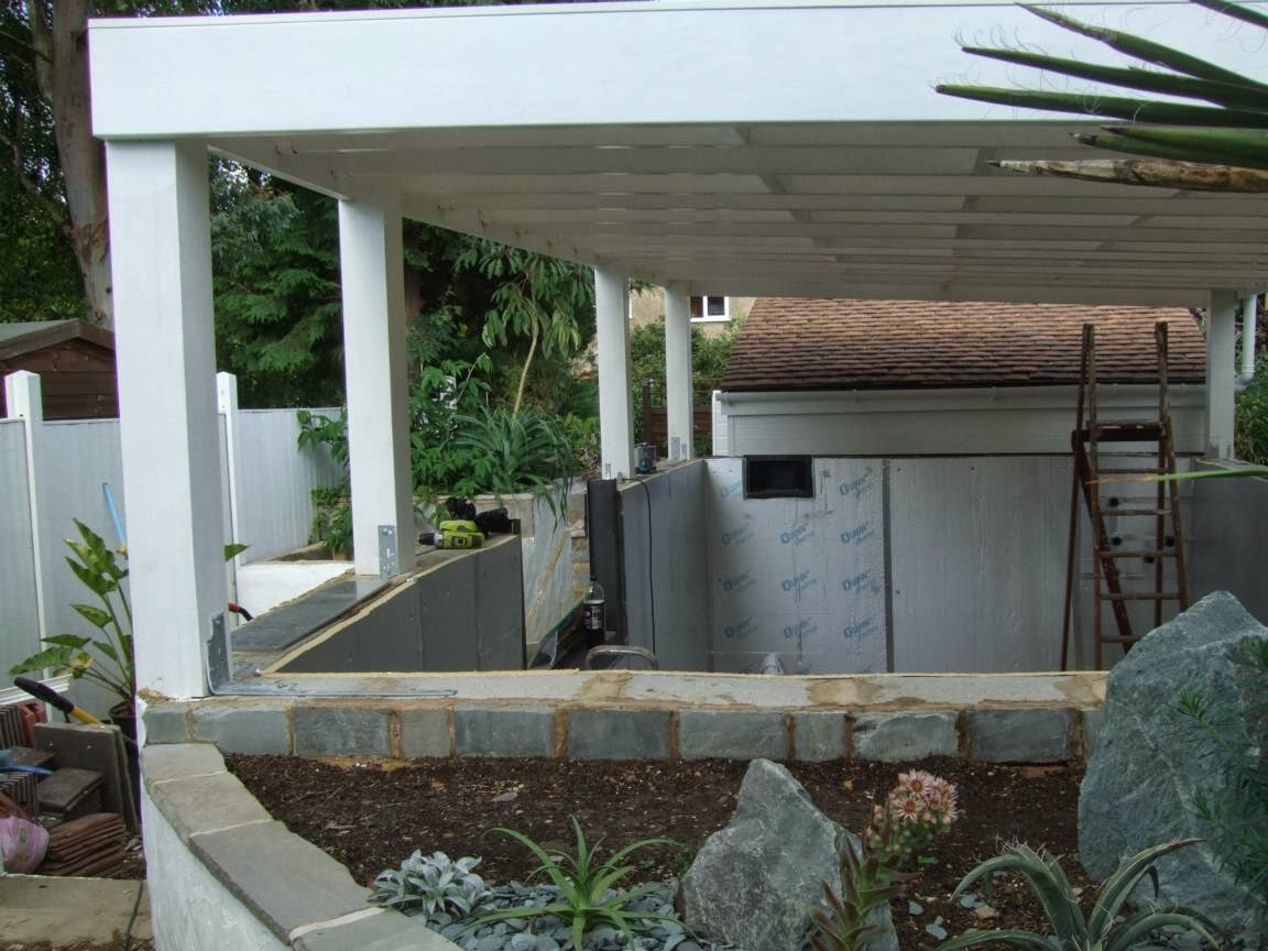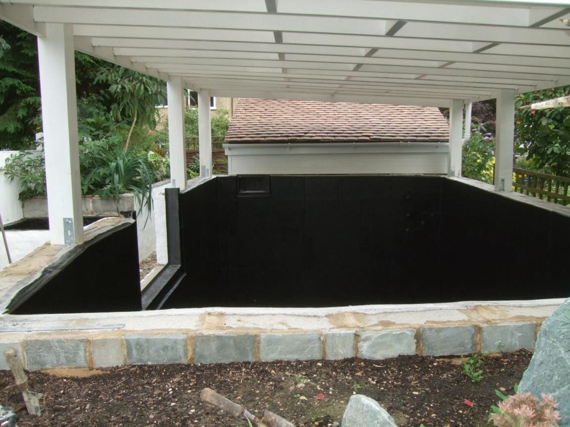 If you have somehow missed the earlier parts they can be seen in these links (part 1, part 2 and part 3). This series of posts left the project in August 2012 when the pergola had just been completed and we were preparing the pond for fibre-glassing.
