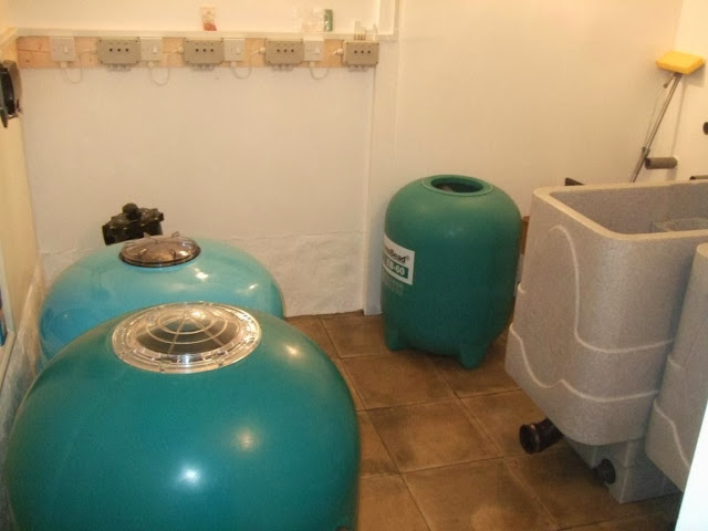 We positioned the filters and made sure we were happy with the layout, moving them about several times before deciding on the final choice. Originality we had planned to have them much tighter together and have additional storage in the filter house. However when we looked at it we decided it would actually be better to have plenty of space to move around and access the filters. Several months on from making that decision and I'm really glad we did. It makes life so much easier to have plenty of space for maintenance.