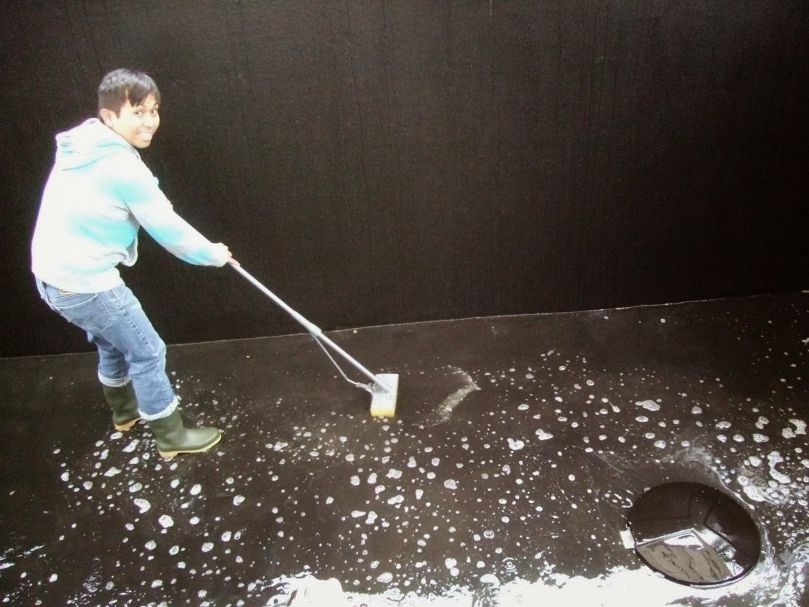 With the pond boarded there were only a few more tasks to complete before it would be made waterproof. The final one being to get it as clean and dust free as possible. We cleaned and even vacuumed the floor. The pond base was not insulated as the ground should provide insulation and at that depth the ground is often warmer than the air temperature in winter and will help provide some relative warmth to the bottom of the pond.