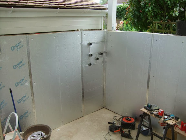In the last post we were fitting the insulation board to internal walls. This has two benefits, firstly it saved us having to render the walls to get a smooth finish and also would help insulate the pond from cold winter weather.