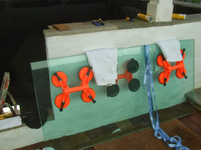 With the pond clean we could then fit the window. This weighed around 80kg. We didn't get any photos whilst we were fitting it as all hands were needed to manipulate the window.