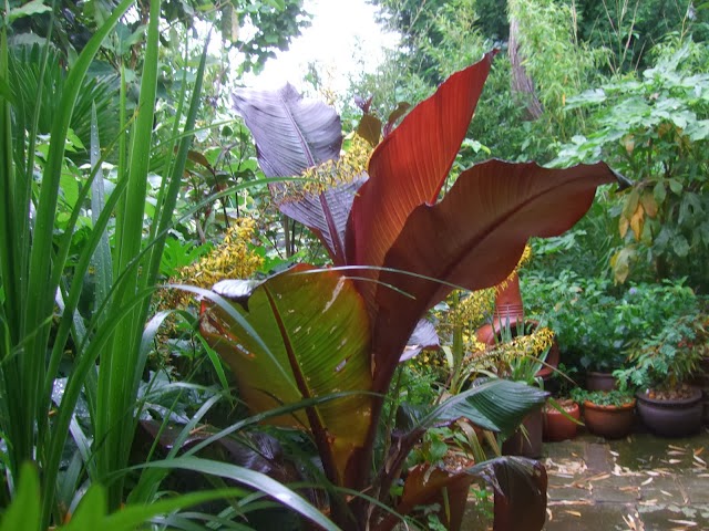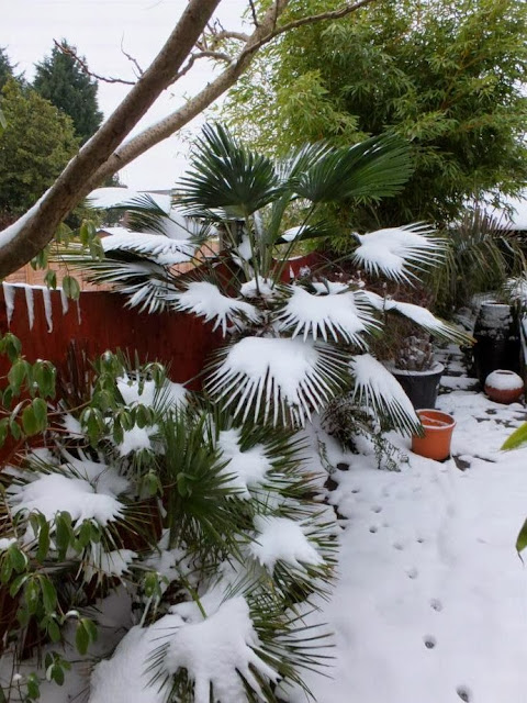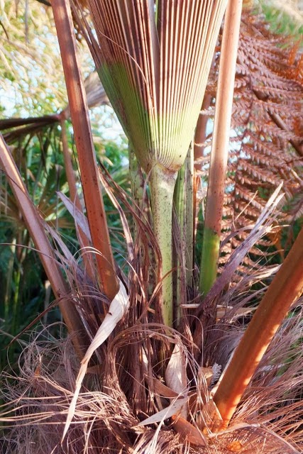 On some years we would throw in a few layers of fleece in between the crown and its own leaves just to give it some extra insulation. And sometimes we would even anchor down the folded leaves with netting fastened with tent pegs just in case the winds would uncover it especially as the leaves itself rot down through the course of the winter. This winter we haven't bothered with any of both and just relied on the leaves itself to rest on to the crown and do its thing. So far so good but then again it's been a mild winter so far.