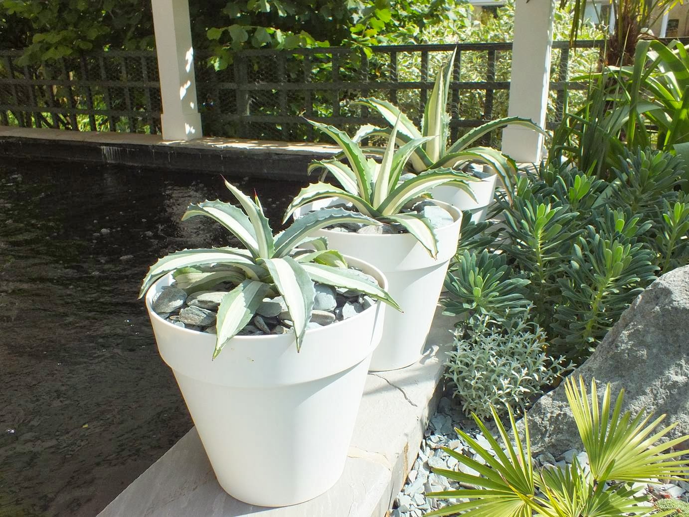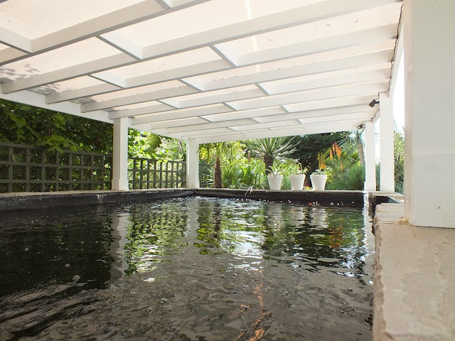 I second everything Gerhard said, it indeed will be very difficult to show you around my garden someday. This is just so so beautiful! What happy, lucky fish. Those 3 potted agaves are the perfect flourish and those chairs are wonderful!!!