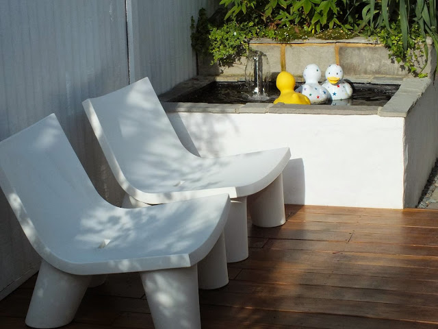 Delete!!!! Absolutely fantastic! This part of your garden looks so exotic! I like a touch of contemporary and also whimsy! Little rubber ducks made me smile! Wonderful, tasteful and fun, fun, fun!