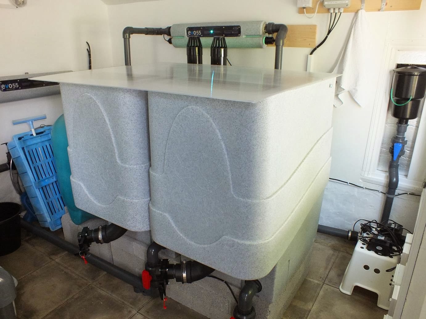 One of the key requirements to the pond was to have as water as clear as possible, after all that work we wanted to see the fish. Clear water also means heavily filtered water, this would be good for the fish, giving them a healthy environment to live in. The filtration set up we opted for should be capable of filtering a pond several times larger than the pond we built. This allows us to turn part off for maintenance without giving us too much to worry about, and also ensures that quality and clarity of the water, both for our enjoyment and the fish health.
