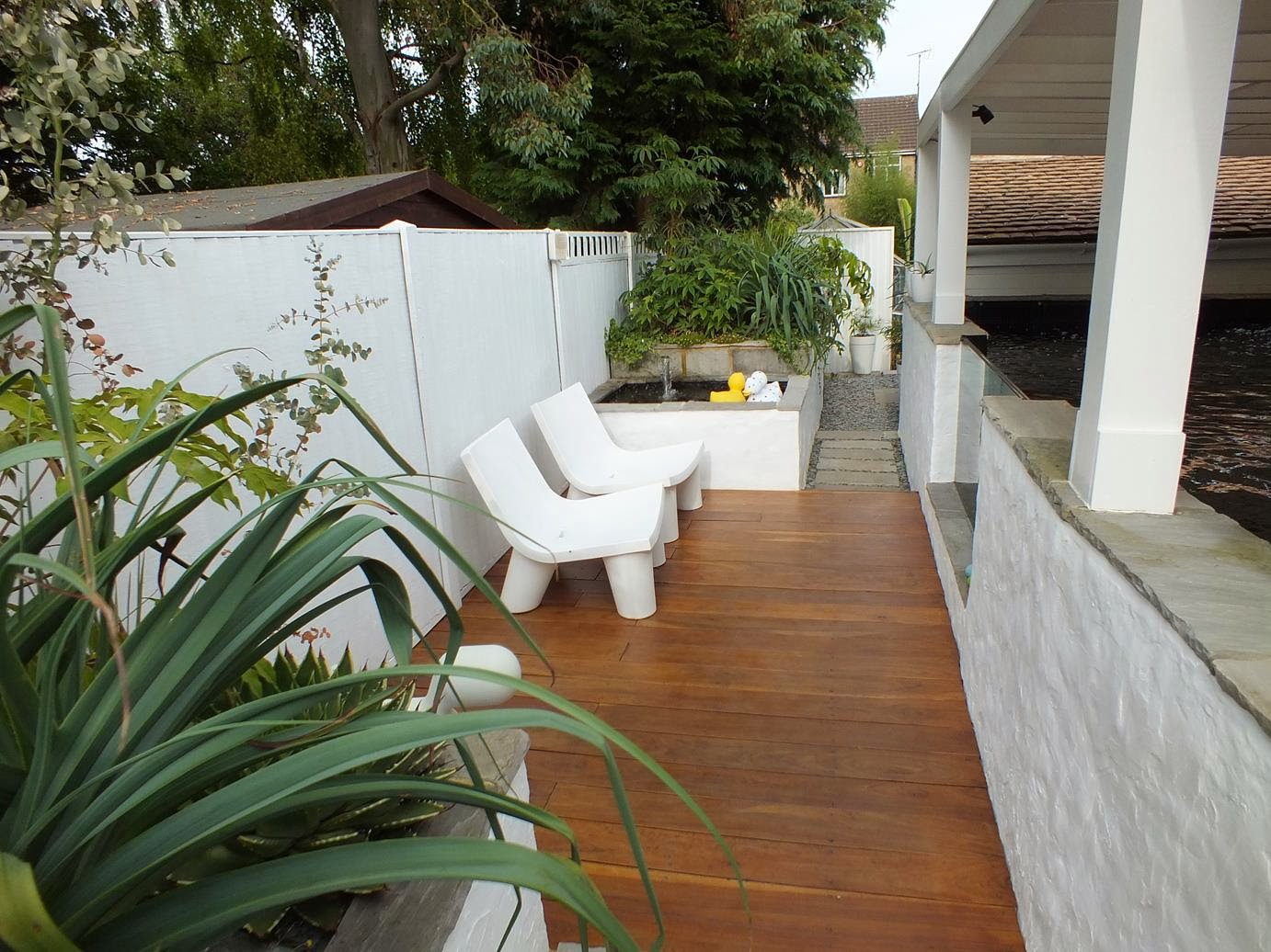 The pond was only part of the project, we were keen to blend the pond into its surroundings, creating new raised planting beds, and also a decked area to sit and watch the fish.