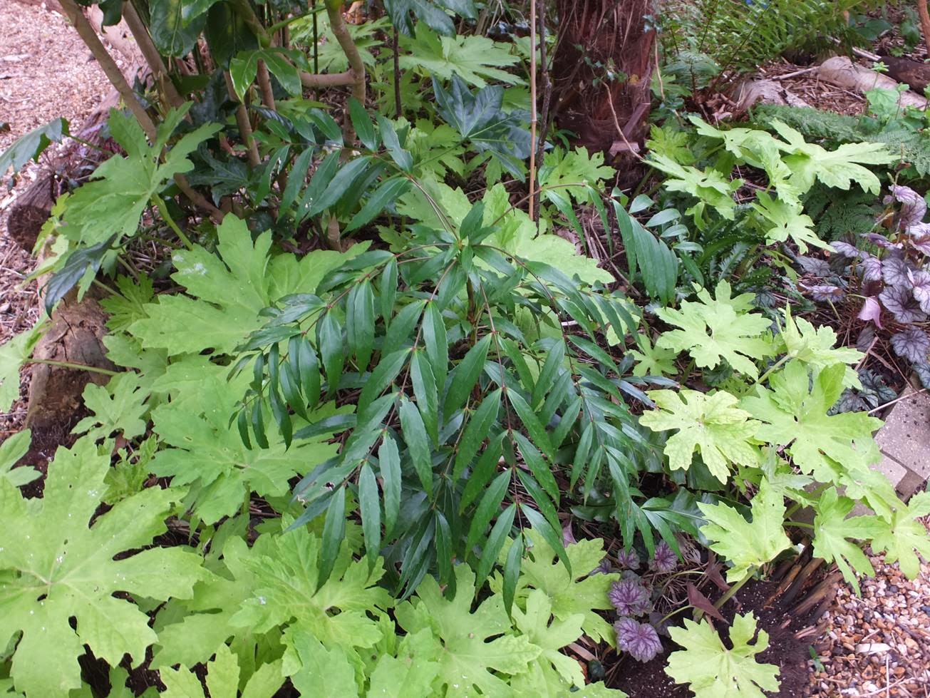 DeleteSo much drool-worthy foliage, and I am impressed with how quickly the newly planted area is taking on that lush jungly feel. Love the euphorbia, I made a note of it last year from one of your posts! I also love that Mahonia eurybracteata. Aren't fesh acer leaves magical? Mine went from swelling buds to new leaves almost over night, completely changing that part of the garden.