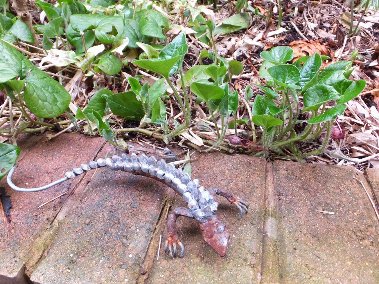 | Asarum caudatum creeping away nicely and studiously being protected by a lizard... |