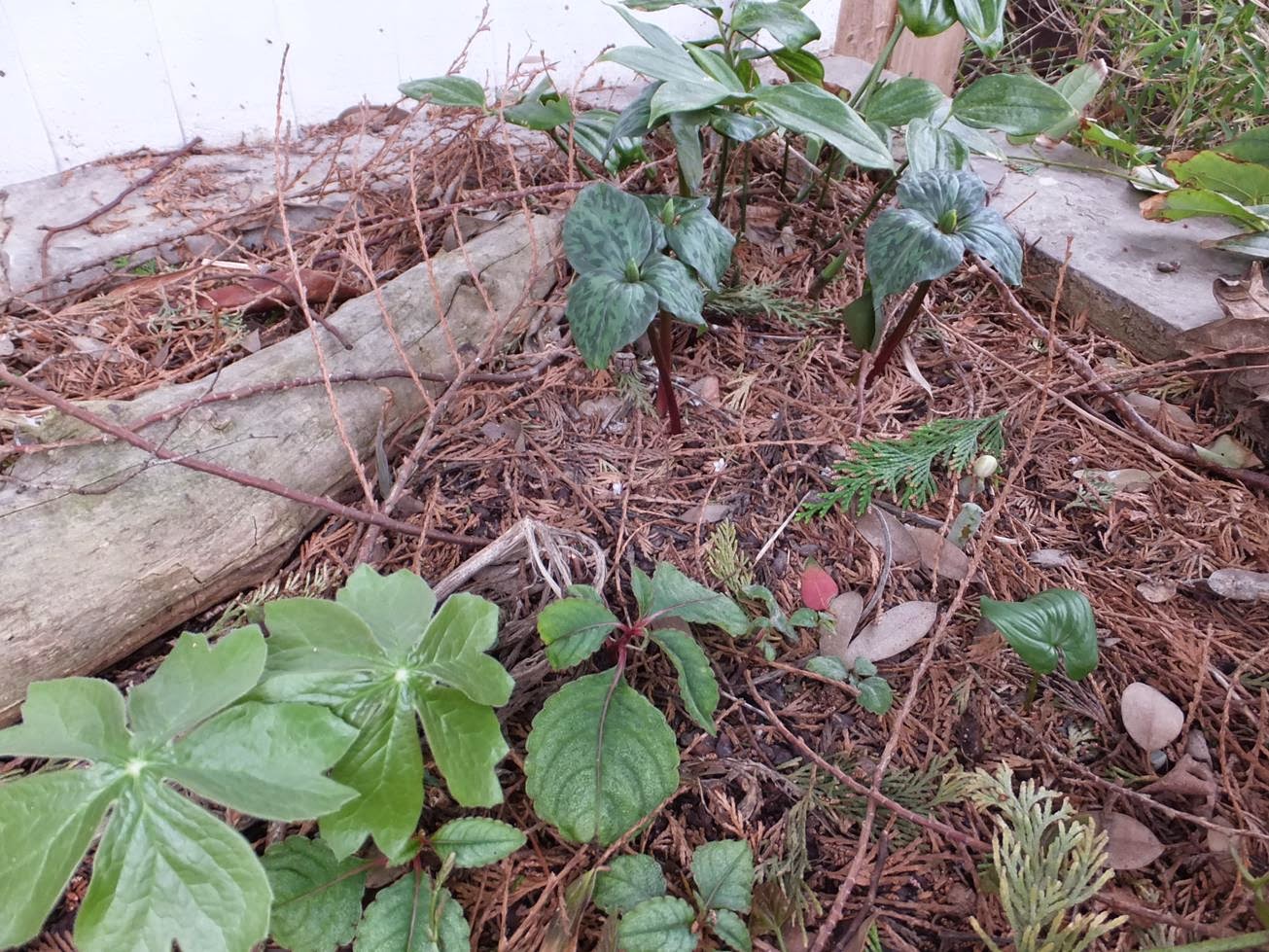 | I cleared out most of the tatty and old growth in this area last Saturday to reveal a mix of newly sprouted and sprouting woodland gems (Trillium, Disporum, Podophyllum, Impatiens, Maianthemum can be seen in this photo) |