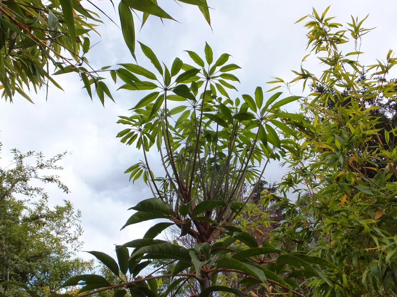 All the Scheffleras in the garden are busy flushing away and I ought to take a photo of them one by one. This one is the Garden House Schefflera rhododendrifolia. I think the lighting was perfect on this spot when I took this photo.