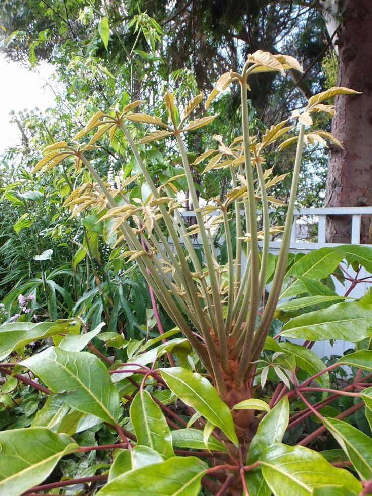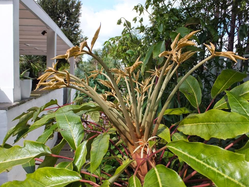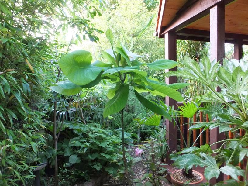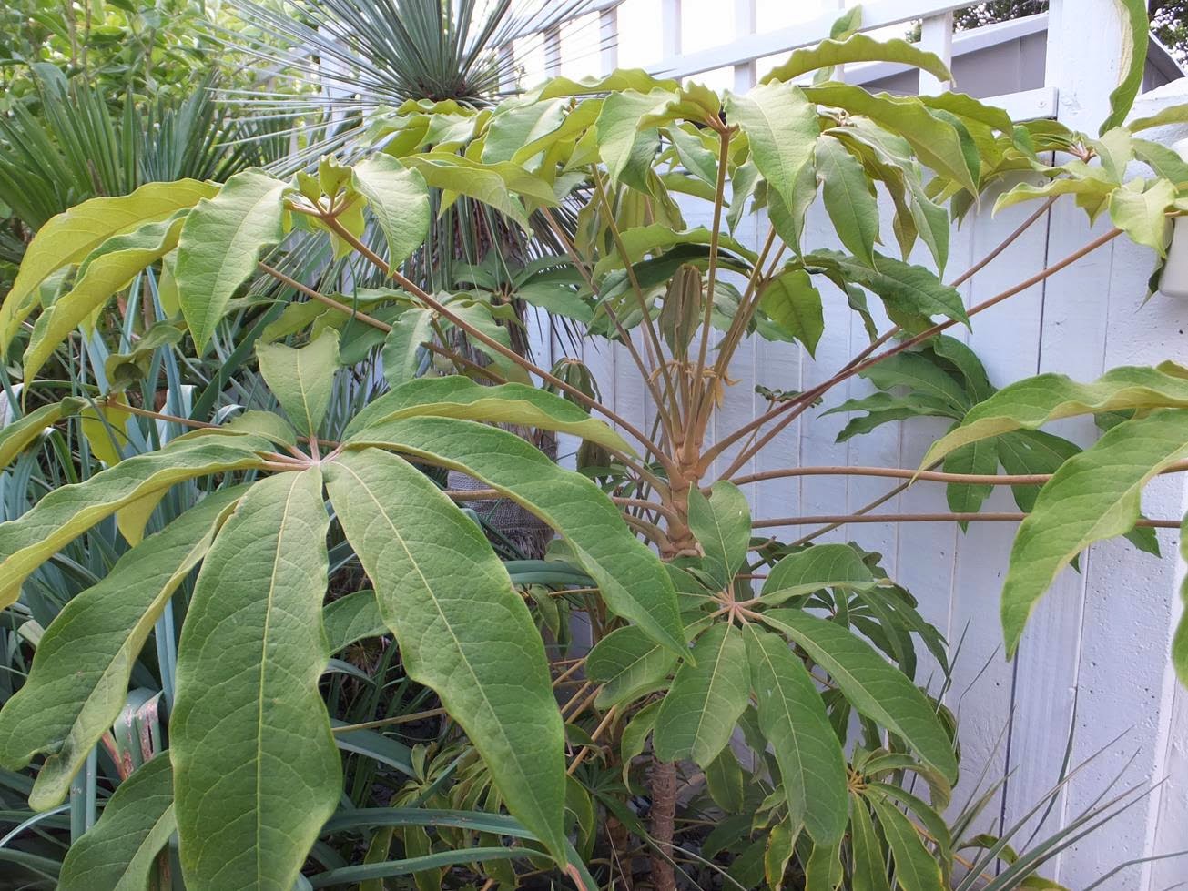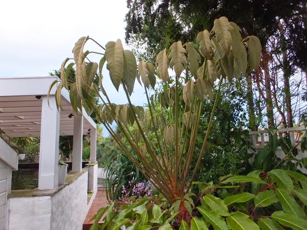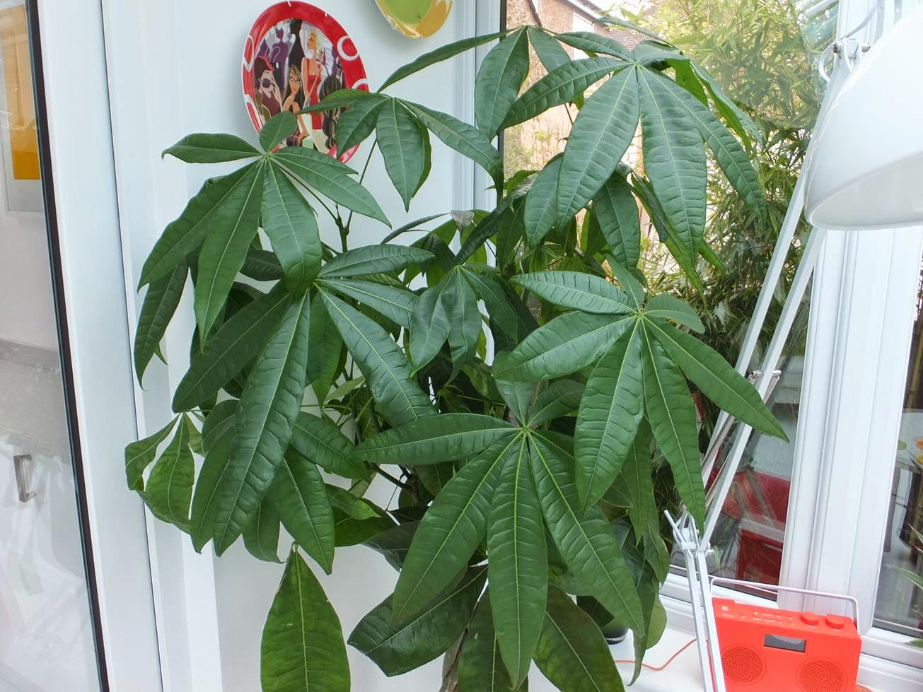 | The Pachira aquatica is growing away nicely looking very lush, with leaves not too dissimilar to my beloved Scheffleras |