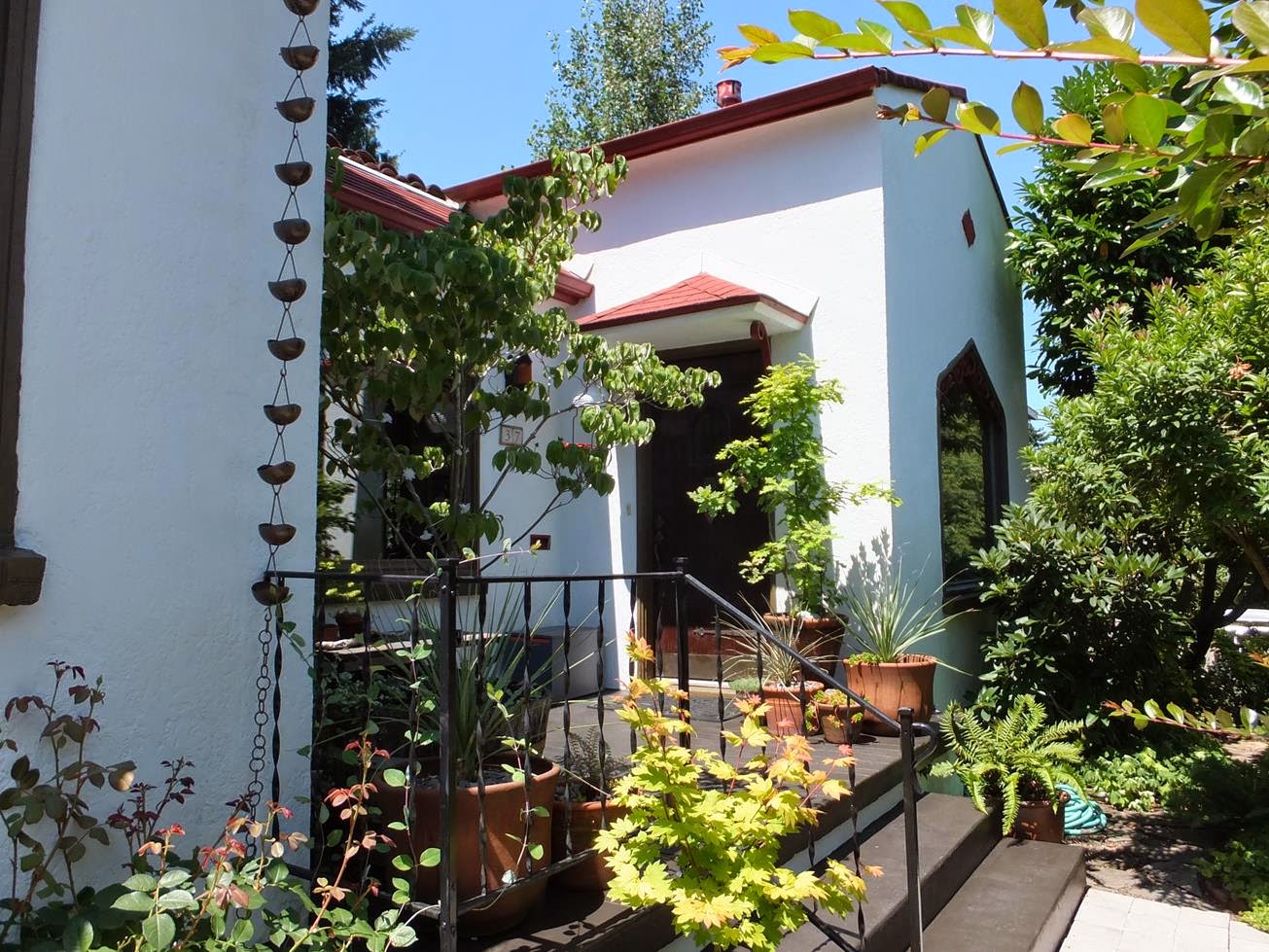 The front garden spills into the street, with the planting in the verge (hell strip) extending the garden right up to the road side, with the pavement feeling like a private part of the garden rather than simply a public space. The planting up of the verge is more more common in Portland (and elsewhere in the States?) compared to at home. Whilst this is still the property of the city the responsibility for maintenance is down to the homeowner, and many make full use of this extra space.