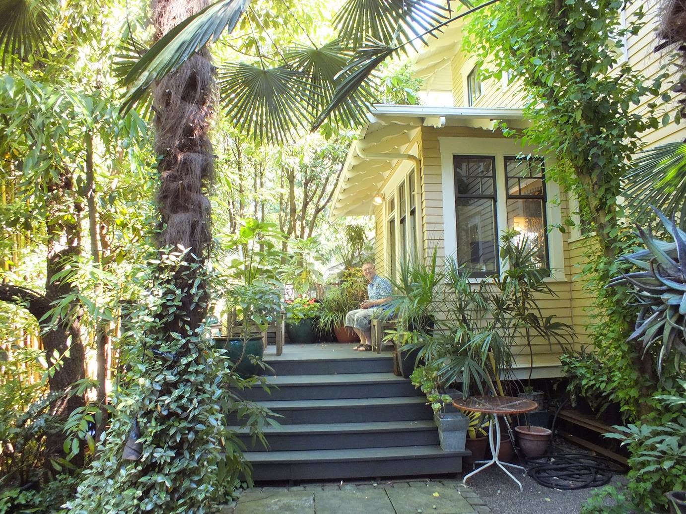 DeleteThis garden reminds me so much of your own. I love that gate! Have fun in Portland. My son lives there, and he has taken me on a tour of some of the neighborhoods where beautiful gardens seem to bloom with little effort. I am so jealous of his climate.