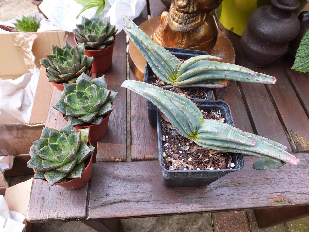 An Aloe made it on my recent purchases and that is Aloe suprafoliata. The leaves are distichous when young but will eventually spiral as it matures. They look so unusual and attractive and one would not have been enough, so I got four instead.