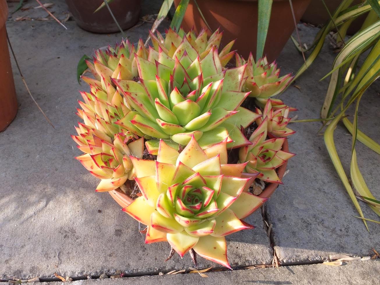 On my recent trip to our little succulent greenhouse I can't help but especially notice the group of Aeoniums on the right hand side by the door. At the moment some of them look more like flowers than fleshy leafed succulents.