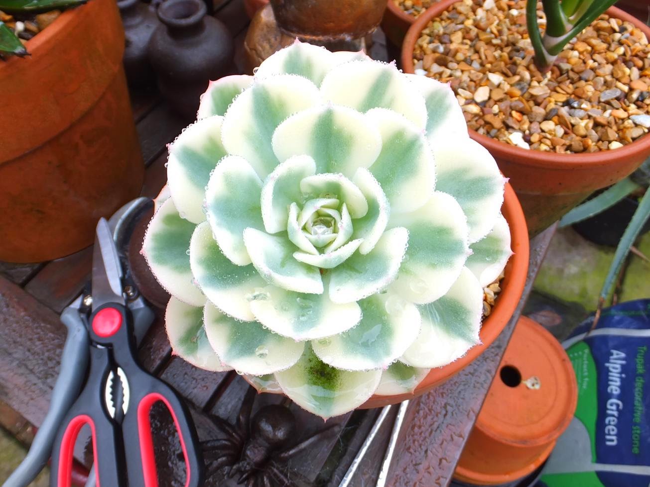 | Still out and on display - Echeveria 'Compton Carousel' (note the dew, the air was that damp) |
