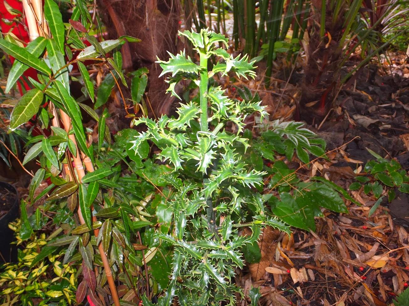 Hardy evergreens (but not quite) - although they generally should be fine left outside all winter, because of their size and susceptibility due to being in pots (rather than on the ground) they could do with being shoved under cover if the weather gets really cold. These plants I huddle together just outside the greenhouses and outbuildings ready to be moved in at the last minute if needs be. Our potted Scheffleras are in this category