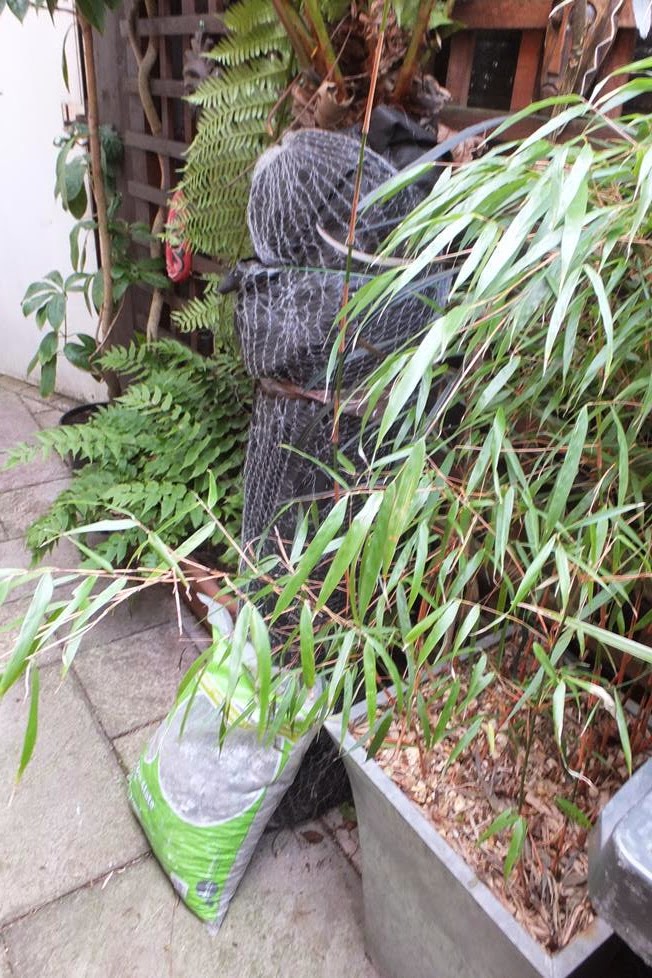 As it was so heavy and I was on my own I left it at the front of the house, to wait for Gaz's arrival so we can shift it at the back together. I have very little worries about leaving anything at the front as our street is very quiet and nothing gets stolen (touch wood). So I went back into the garden and carried on with my usual business. Half an hour later I went to the front to put things in the rubbish bin when I saw that the tree fern was missing!!!
