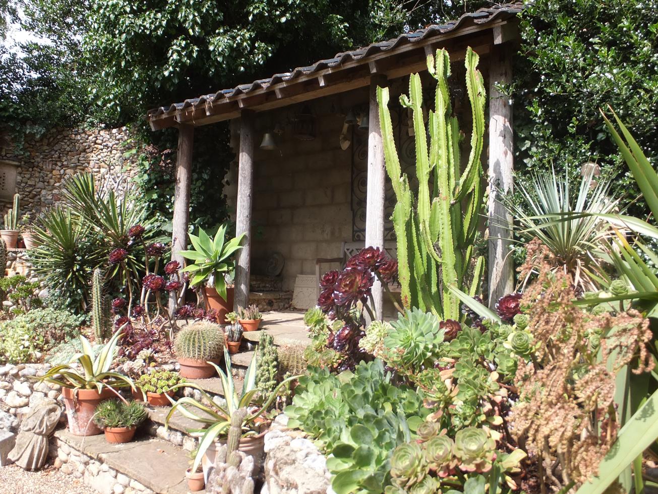| Succulents with more leafy plants, I really like this combination. Many of the succulents are in pots and I assume moved to more a benign location for winter. |