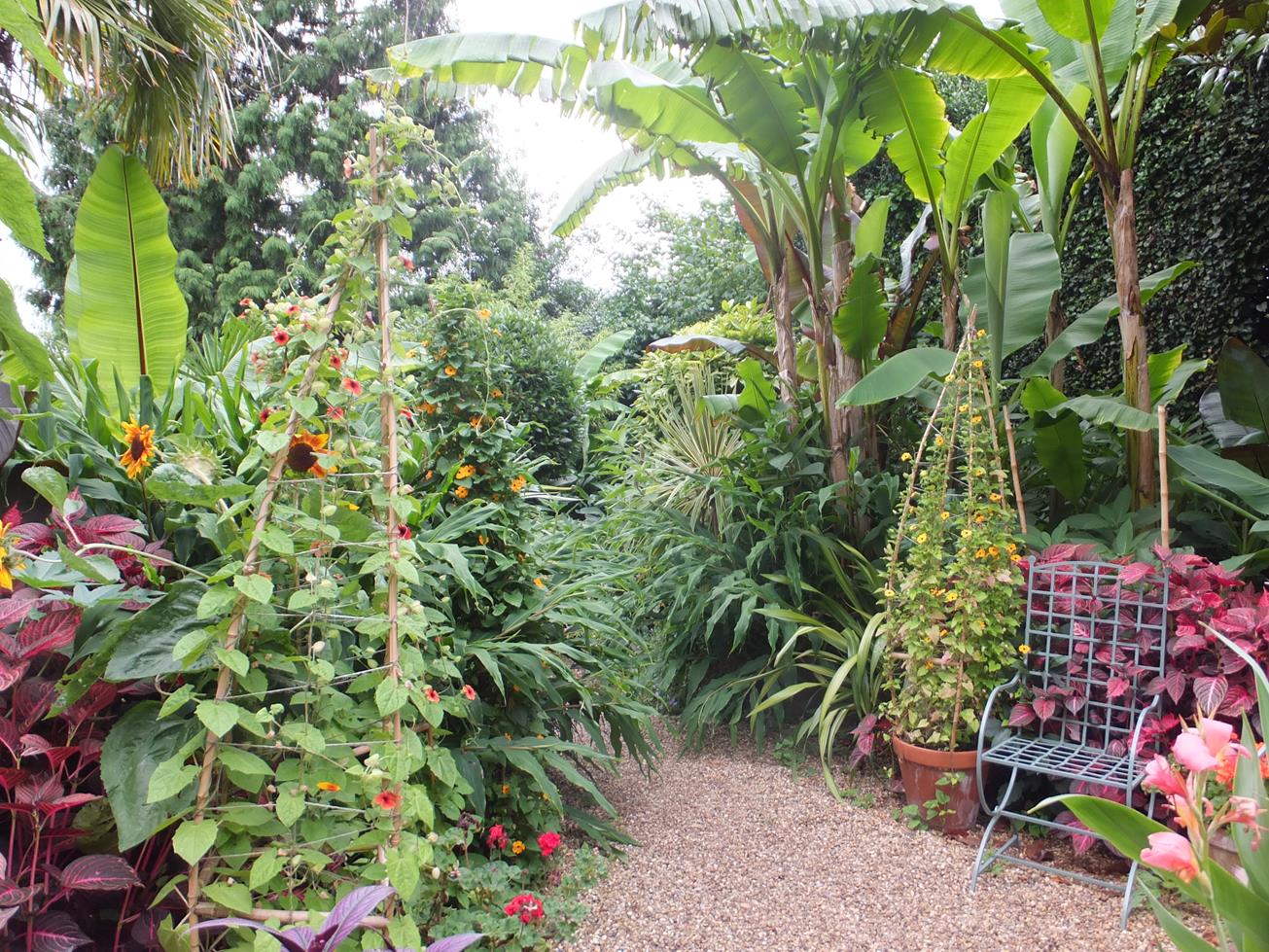 Anyone with even a passing interest in growing exotic plants will be aware of Will Giles, gardener, author, tv personality who has over the last 30 odd years created The Exotic Garden in the centre of Norwich. The garden is a blend of very tender plants and hardy plants with an exotic feel, and does transport you to another place. The garden to us has a very Caribbean feel, with extremely bright colours combined with lush large leaves.