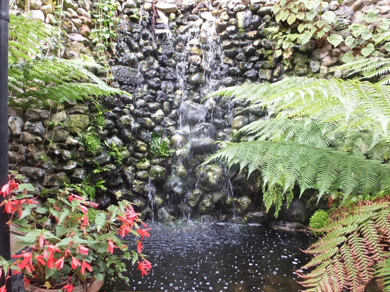 | A delightful cascade by the rear door of the house, the pool was home to a selection of koi. |