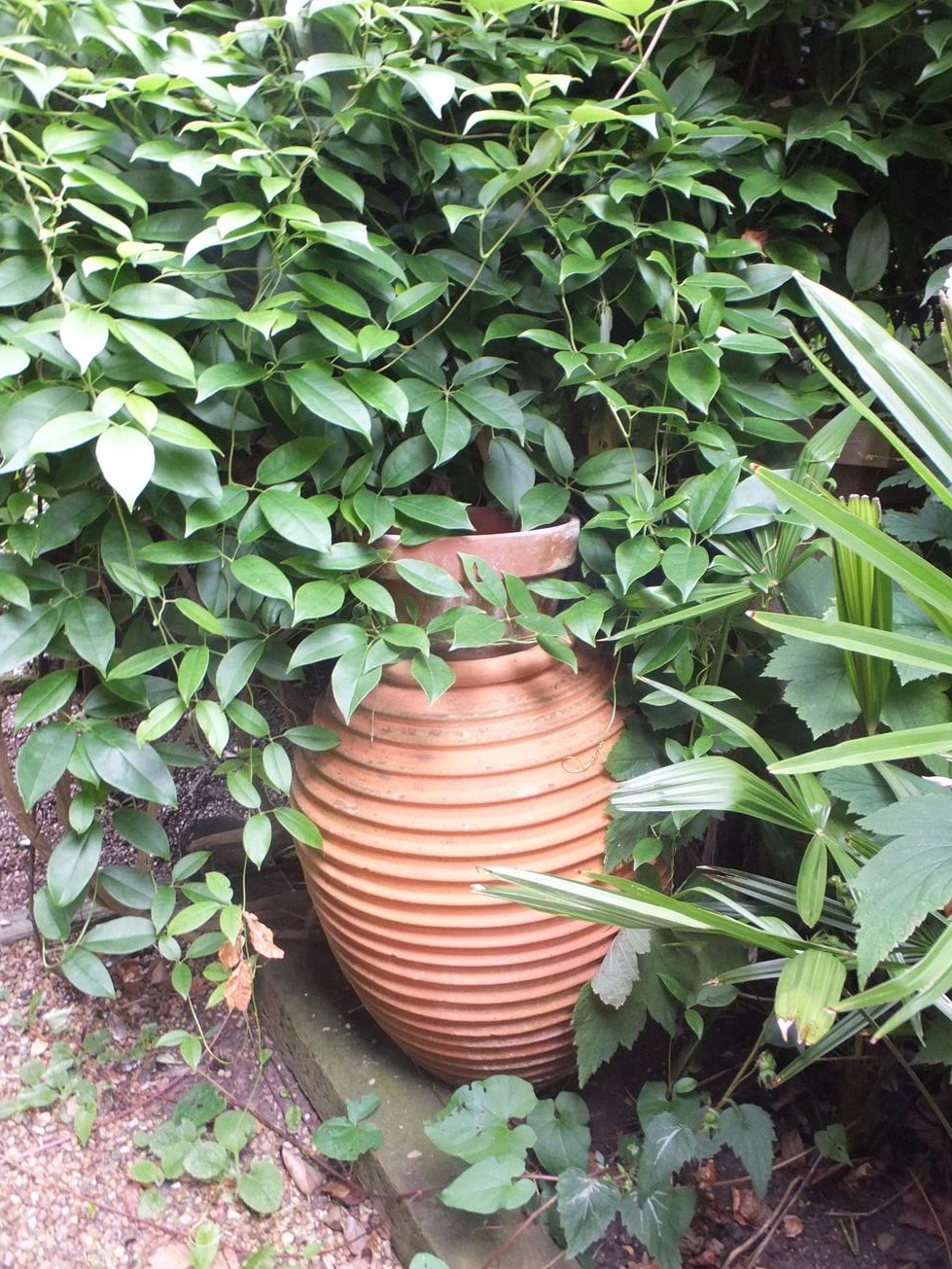 DeleteI don't know why, but the first thought that struck me is that I would LOVE to spend some time in this fabulous garden when it rains. Well, anytime really, but especially when it rains. I can just imagine the sound of water on those large leaves - like a hydrophonic symphony. (Pretty sure I made that word up, but you know what I mean...) That Begonia luxurians is so massive - is it in the ground?