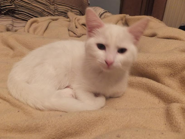 This is Cotton, she's about 4 months old now and making her presence known with the other two cats. Knickers and her seem quite friendly despite her regularly tormenting him. Twinkles on the other hand does not seem best pleased to have a new kitten in the household and mostly just tolerates Cottons existence.