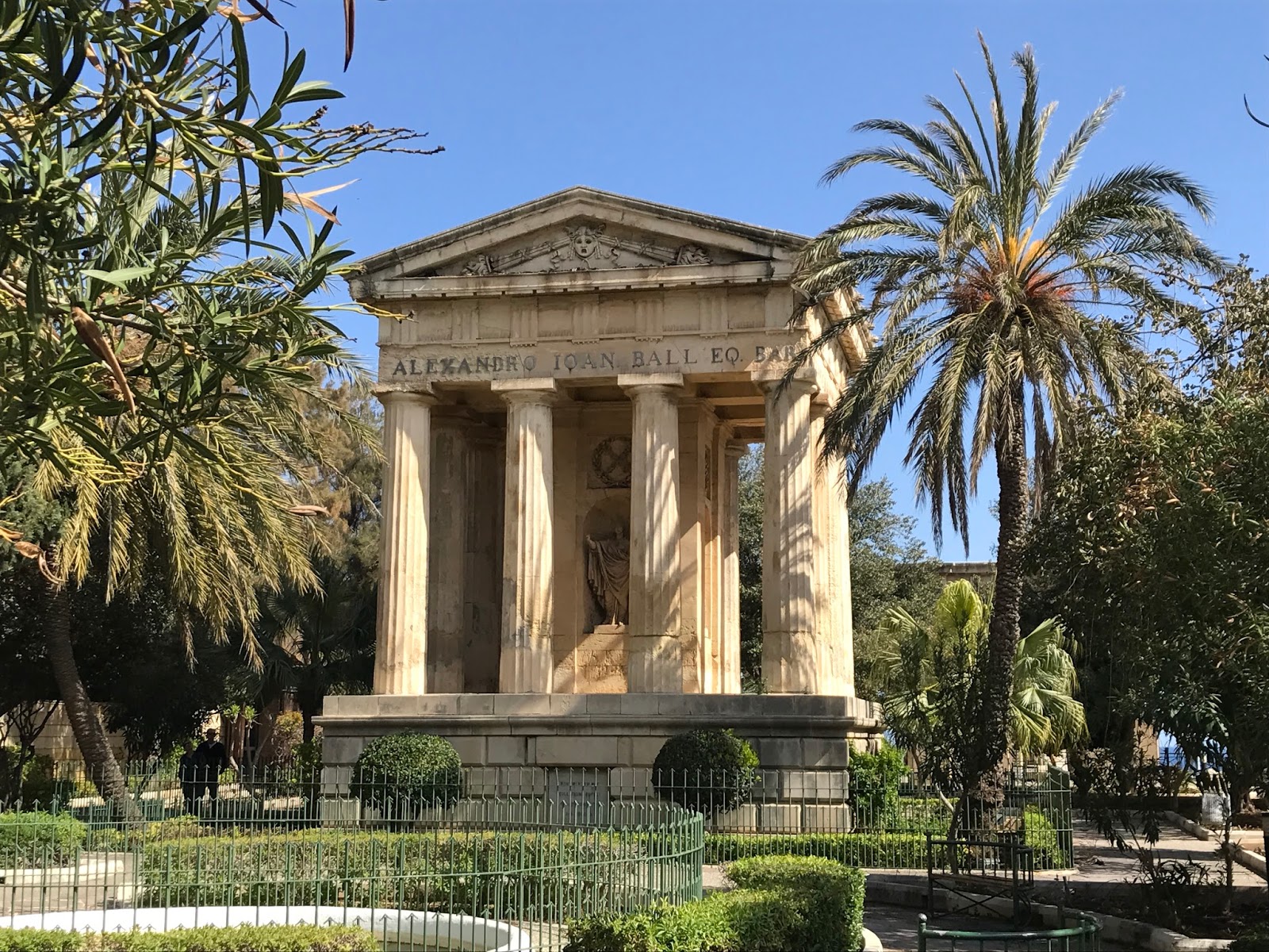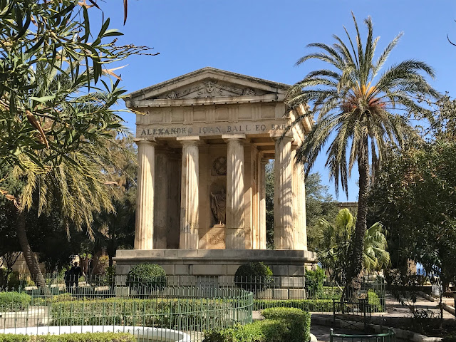 Lower Barrakka Gardens provides a great view of the Grand Harbour and the neighbouring city of Vittoriosa. At the centre of the garden is the Monument to Sir Alexander Ball, pictured above which is a neoclassical temple located at the centre of the garden.