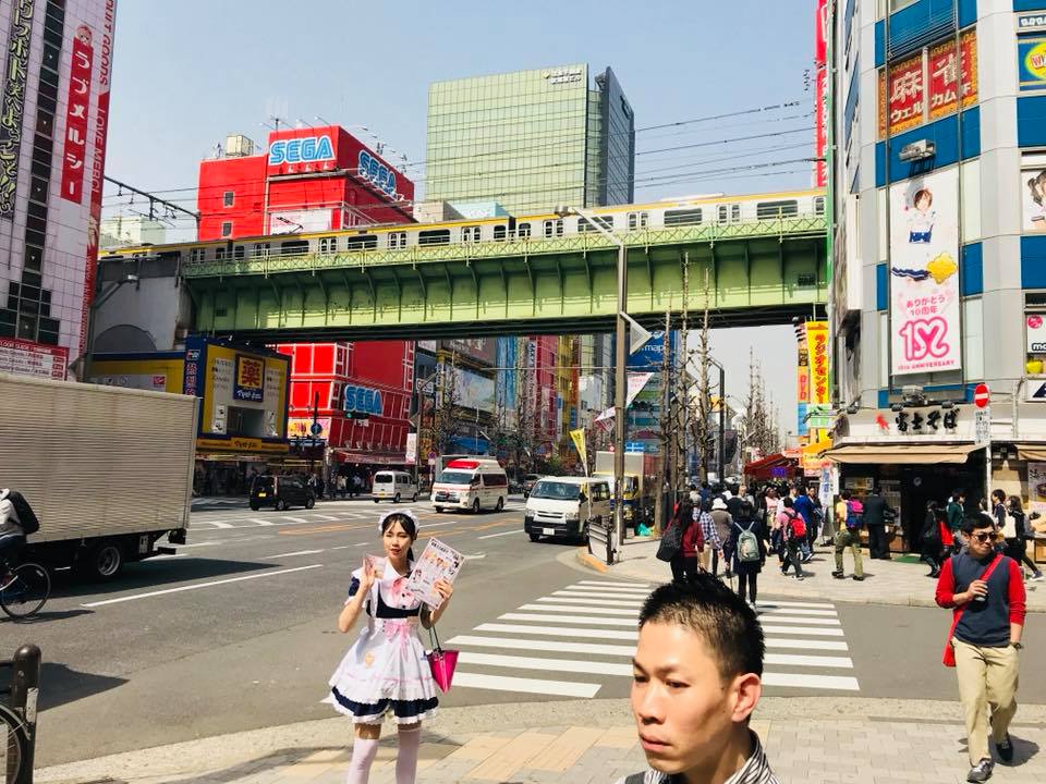 The lady dressed as a maid in the photo above is advertising a "Maid Café", waitresses dress as maids to serve the customers (masters), we decided to give it a miss!