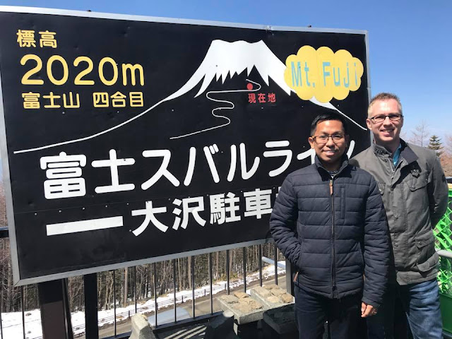 Fuji is a couple of hours coach drive from central Tokyo, and we were given tempting glimpses on the journey there - its such a large mountain that even from Tokyo you can get a reasonable view if elevated.