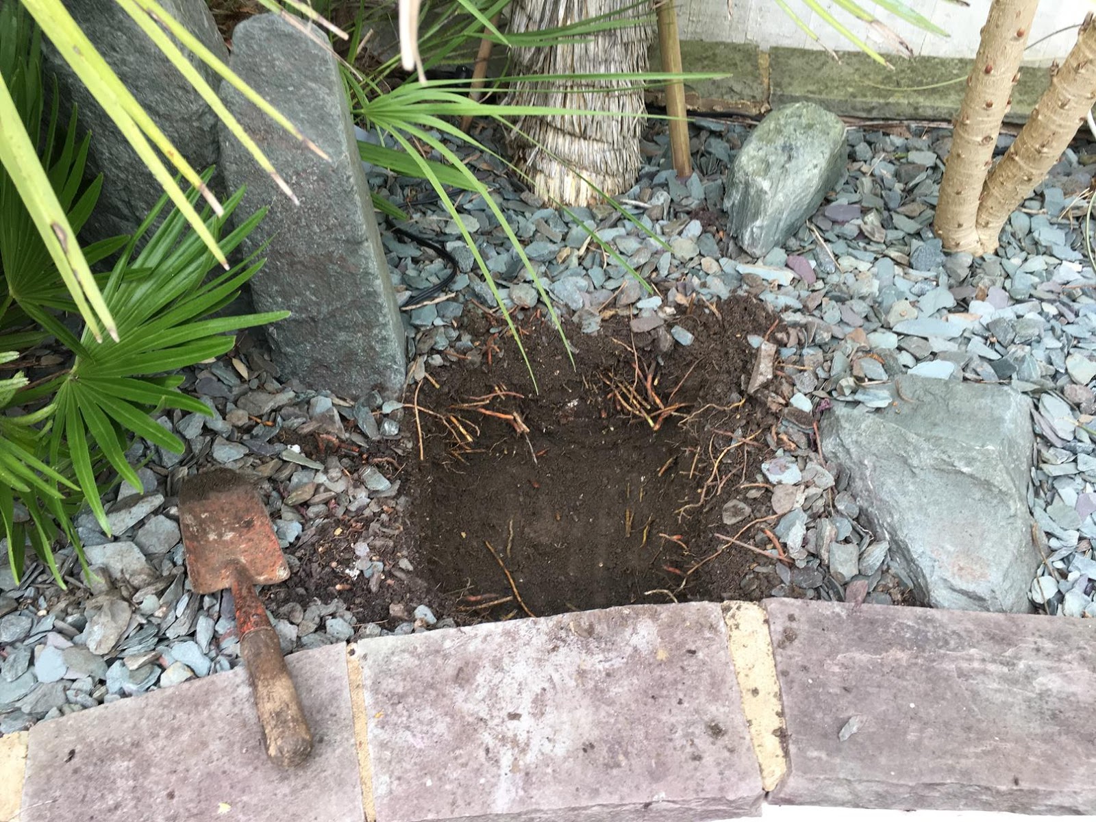 The plant that was dug up was a much bigger clump so took awhile to be removed, but finally after all that a suitable hole was prepared: